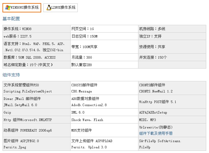 1、通過windows系統和linux系統的切換,可以滿足asp\asp.net個版本\php程序語言,試用范圍非常廣。